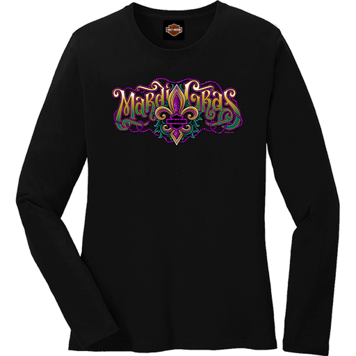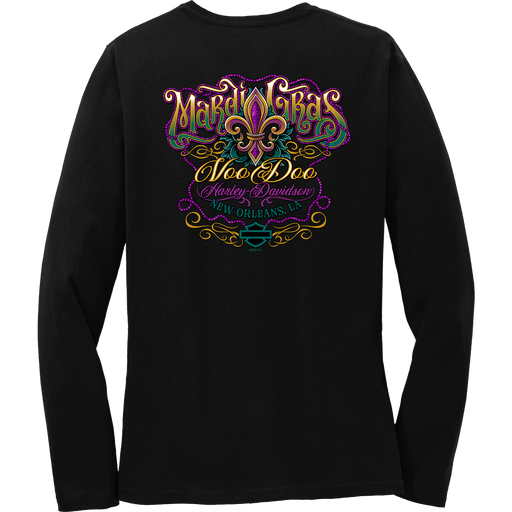 Voodoo Harley-Davidson Women's Long Sleeve T-Shirt Mardi Gras Carnival design 100% Cotton