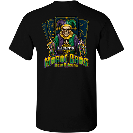 Voodoo Harley-Davidson Men's Short Sleeve T-Shirt 100% Cotton Mardi Gras Joker Jester design