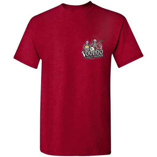 Voodoo Harley-Davidson Men's Short Sleeve T-Shirt with Cajun Band Design. 100% Cotton.