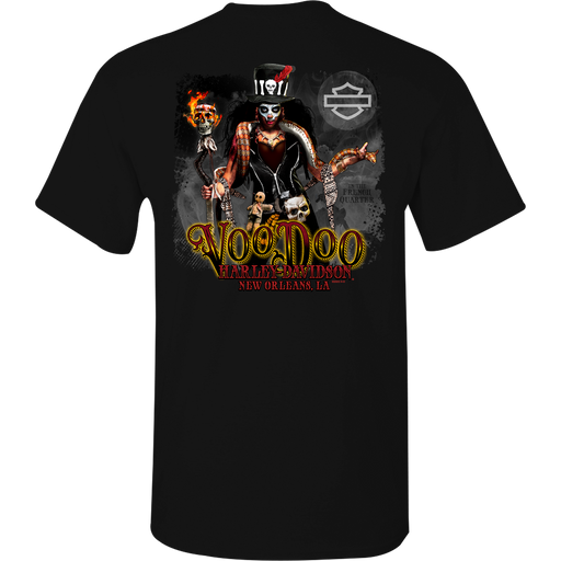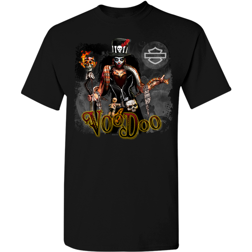 Voodoo Harley-Davidson Men's Short Sleeve T-Shirt with Voodoo Priestess Design. 100% Cotton