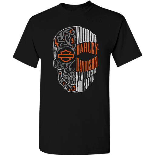 Voodoo Harley-Davidson Men's Short Sleeve T-Shirt with Divided Design. 100% Cotton