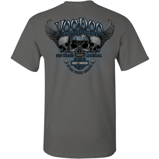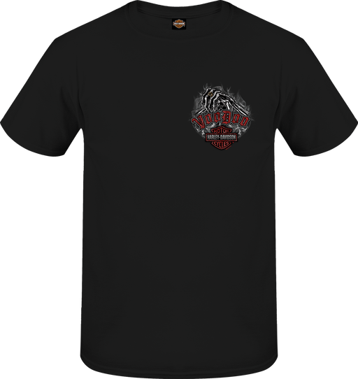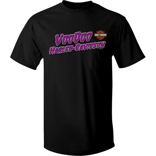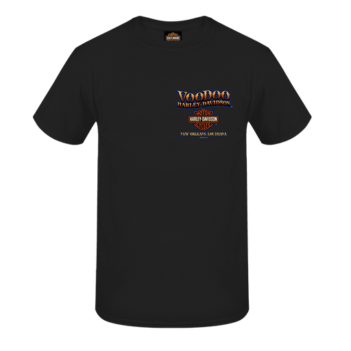 Voodoo Harley-Davidson Men's Short Sleeve T-Shirt with Façade Design. 100% Cotton.