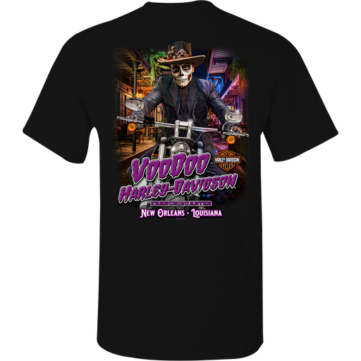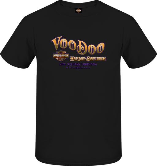 Voodoo Harley-Davidson Men's Short Sleeve T-Shirt with Decatur Street design. 100% Cotton.