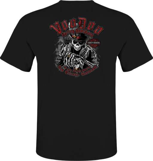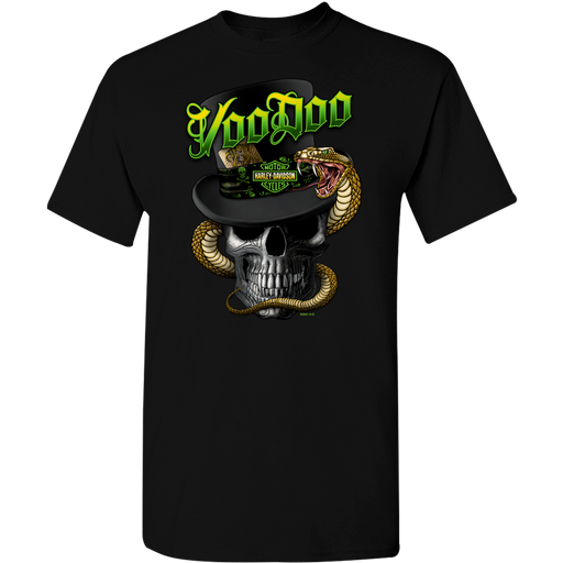 Voodoo Harley-Davidson Men's Short Sleeve T-Shirt with Voodoo Priest Design. 100% Cotton