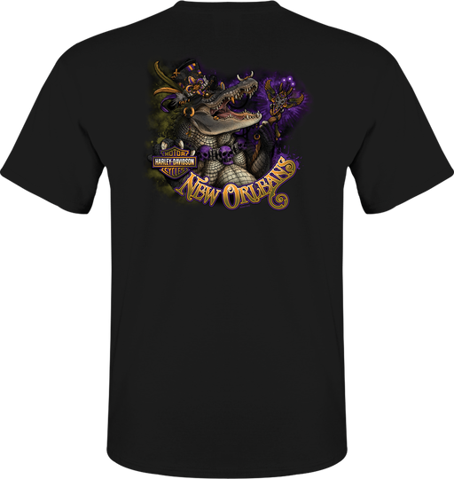 Voodoo Harley-Davidson Men's Short Sleeve T-Shirt with Voodoo Gator Design. 100% Cotton.